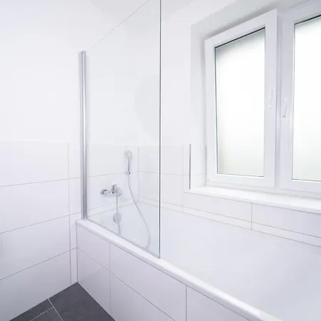 Favorite Stays - Suite And More - 10 Min Zur Messe biedt een zitruimte en is ingericht met een bank, en moderne gemakken zoals een TV en een flatscreen TV met satellietzenders. Bezoekers zullen genieten van het comfort van een badkamer met een haardroger, toiletartikelen voor gasten en badlakens in het appartement. Er is ook een badkuip en een douche.